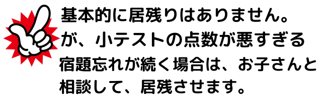 1コマ~3コマ(お子さんの通塾回数により変動します)無料で補習を行います。