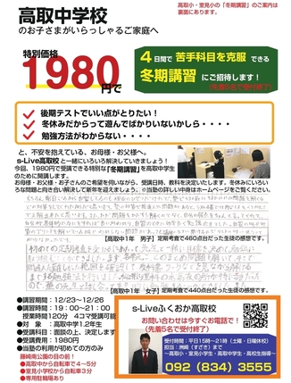 個別指導学習塾エスライブ高取校では冬期講習を開講します。